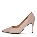 Эффектные бежевые туфли на тонком каблуке. Верх выполнен из матовой кожи шевро и бархатистого велюра. Комфорт стоп и идеальную посадку обуви обеспечивают подкладка и стелька, выполненные из нежной кожи шевро. Изящный каблук высотой 95 мм формирует оптимальную поддержку.