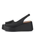 Минималистичные черные кожаные босоножки на танкетке. Подкладка из натуральной кожи и стелька из кожи шевро формируют дополнительный комфорт стоп. Широкая танкетка обеспечивает оптимальную поддержку. Пара гармонично дополнит образы с платьями, брюками и юбками.