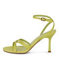 Эффектные жёлтые босоножки из гладкой кожи шевро. Комфорт стоп обеспечивают кожаная подкладка и стелька из нежной кожи шевро. Пара отлично впишется в образы с брючными костюмами, воздушными платьями и юбками. Тонкий каблук высотой 90 мм делает силуэт визуально изящнее.