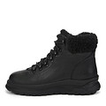 Чёрные кожаные ботинки в спортивном стиле. Модель утеплена натуральным мехом, а подошва из материала ТЭП отличается гибкостью и морозоустойчивостью. Сочетание боковой молнии и шнуровки обеспечивает комфортную посадку по ноге. Лаконичность дизайна позволяет сочетать ботинки с любым образом.