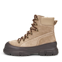 Лаконичные темно-серые ботинки в стиле треккинговой обуви. Верх модели выполнен из бархатистого спилка. Подкладка и стелька дополнительно утеплены натуральной шерстью, а массивная подошва из материала ТЭП обеспечивает отличное сцепление с любой поверхностью и отличается прочностью.
