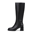 Эффектные черные кожаные сапоги на широком каблуке. Пара утеплена ворсином и натуральным мехом, которые обеспечивают комфорт в любую погоду. Модель с удобной застежкой на молнию. Эластичные вставки на голенщине гарантируют идеальную посадку. Сапоги отлично дополнят образы с юбками и платьями разной длины.