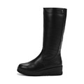Базовые черные кожаные сапоги на платформе. Пара утеплена натуральным мехом, гарантирующим комфорт стоп в любую погоду. Эластичная вставка на голенище обеспечивает идеальную посадку обуви. Модель с практичной застежкой на молнию и гибкой подошвой из материала ТЭП.