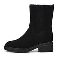 Практичные черные полусапоги из спилка с бархатистой фактурой. Пара утеплена густым натуральным мехом, обеспечивающим стопам комфорт в холодную погоду. За идеальную устойчивость на любых покрытиях отвечает рифленая подошва из материала ТЭП. Застежка на молнию, эластичная вставка на голенище.