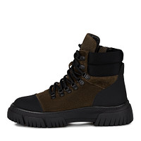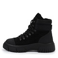 Черные ботинки из мягкого ворсистого спилка с усиленным мыском и пяткой. Пара утеплена натуральной шерстью. Рифленая подошва из материала ТЭП гарантирует хорошее сцепление с любыми покрытиями. Лаконичная шнуровка и практичная застежка на молнию обеспечивают отличную фиксацию пары на ноге.