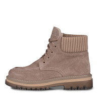 Оригинальные серые ботинки из бархатистого спилка. Подкладка и стелька из мягкого войлока гарантируют стопам защиту от холода. За идеальную устойчивость на любых покрытиях отвечает рифленая подошва из материала ТЭП. Эластичная вставка из текстиля на голенище добавляет комофрта. Шнуровка, застежка на молнию.