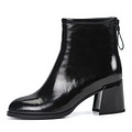 Черные кожаные ботильоны на устойчивом каблуке. Пара утеплена мягким ворсином. Прочная резиновая подошва формирует устойчивость на любых покрытиях. Модель с застежкой на молнию.