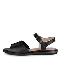 Лаконичный дизайн летних босоножек становится интересным за счет комбинирования цветов – белая, с декоративным швом посередине, союзка и черный задник с застежкой-пряжкой. Модель выполнена из натуральной кожи (задник фактурный, имитирующий кожу рептилии), отлично вписывается в летние образы в городском стиле. Плоская подошва из стойкого к истиранию термоэластопласта с декоративной накладкой сзади.