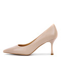 Женские классические туфли-лодочки из натуральной дышащей кожи бежевого цвета с острым носом и закрытой пяткой. Выполнены на устойчивом среднем каблуке и гибкой резиновой подошве с противоскользящим эффектом. Комфортная и элегантная обувь для офиса и повседневного образа, отлично дополняет юбки и платья.