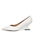 Женские туфли-лодочки из натуральной мягкой и дышащей кожи молочного цвета с острым носом и закрытой пяткой. Модель на устойчивом среднем каблуке необычной формы и гибкой износостойкой резиновой подошве с противоскользящими свойствами. Идеальны для повседневной носки, работы и праздничных образов.