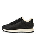 Демисезонные кроссовки из натуральной кожи на контрастной, двухслойной подошве. Цвет верха - черный. Подкладка и стелька пары выполнены из тёплого искуственного меха. Задник модели дополнили логотипом бренда. Подошва из резины из резины дополнена протектором для минимизации скольжения