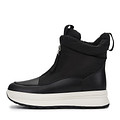 Актуальные черные дутики для активного отдыха. Верх комбинирует плотный текстиль и практичную кожу из спилка. Подкладка и стелька утеплены натуральной шерстью. Высокая резиновая подошва обеспечивает устойчивость на любых поверхностях. Модель надежно фиксируется удобной передней молнией.