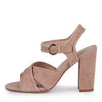 Эффектные рыжие босоножки из бархатистого велюра на устойчивом каблуке. Широкие ремешки с подкладкой из натуральной кожи бережно фиксируют пару на ноге. Стелька изготовлена из нежной кожи шевро. Каблук высотой 100 мм визуально делает силуэт изящнее.  Модель с застежкой на классический замок с пряжкой.