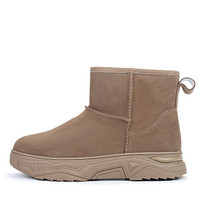 Уютные бежевые угги. Верх выполнен из прочного спилка с бархатистой фактурой. Подкладка и стелька, изготовленные из натуральной шерсти, обеспечивают комфортную терморегуляцию внутри пары. Высокая подошва из резины обеспечивает устойчивость на любых покрытиях. Модель с широким голенищем и практичной застежкой на молнию.