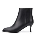 Лаконичные чёрные ботильоны выполнены из натуральной кожи. Модель дополнили боковой молнией. Подкладка и стелька изготовлены из мягкого и тёплого ворсина. Подошва из тунита обеспечивает оптимальную амортизацию и защиту стопы в течение всего дня. Высота каблука 65 мм.