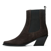 Казаки с эластичной вставкой выполнили из бархатистого велюра. Подкладка и стелька изготовлены из тёплого ворсина. Материал подошвы - тунит, эффективно противостоит скольжению на гладких поверхностях, обеспечивая надёжную опору. Демисезонные казаки в сером цвете – идеальное завершение стильного осеннего образа.