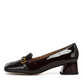 Классические лакированные туфли в бордовом цвете с квадратным мысом. Комфортную посадку обуви обеспечивают подкладка и стелька из мягкой кожи шевро. За отличную устойчивость пары отвечают широкий каблук высотой 40 мм и нескользящая подошва из тунита. Лаконичная модель идеально дополнит праздничные и повседневные образы.