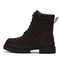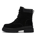 Базовые черные ботинки с высокой шнуровкой. Верх и подкладка выполнены из бархатистого спилка. Стелька утеплена натуральной шерстью. Высокая подошва из материала ТЭП обеспечивает хорошее сцепление с любой поверхностью.