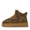 Акцентные леопардовые угги с функциональной шнуровкой. Верх и подкладка выполнены из бархатистого спилка. Стелька дополнительно утеплена натуральной шерстью. Высокая подошва из материала ТЭП обеспечивает хорошее сцепление с любой поверхностью.