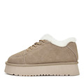 Уютные бежевые угги на холодный сезон. Верх выполнен из бархатистого спилка. Шерстяная стелька обеспечивает комфорт стоп. Высокая подошва из ТЭП отличается легкостью и надежным сцеплением с любой поверхностью.