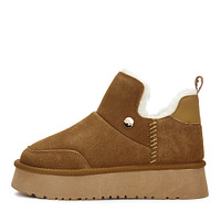 Уютные бежевые угги с оригинальным дизайном согреют в холодный сезон. Верх выполнен из бархатистого спилка. Шерстяная стелька поддерживает комфортную температуру внутри обуви на улице и в помещении. Высокая подошва из ТЭП отличается легкостью, морозоустойчивостью и хорошим сцеплением с поверхностью.