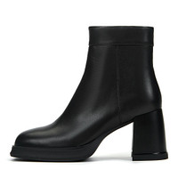 Минималистичные коричневые ботильоны из натуральной кожи. Подкладка и стелька утеплены мягким ворсином. Утолщенная резиновая подошва обеспечивает устойчивость на любой поверхности. Широкий устойчивый каблук высотой 8 см грамотно распределяет нагрузку на стопы.