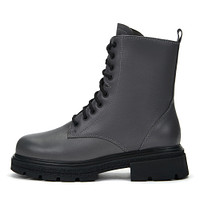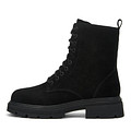 Базовые черные ботинки с высокой шнуровкой. Верх выполнен из бархатистого спилка. Подкладка и стелька утеплены натуральной шерстью. Тракторная подошва из резины обеспечивает хорошее сцепление с любой поверхностью.