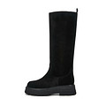 Трендовые черные сапоги с прямым голенищем. Верх выполнен из бархатистого спилка. Внутри модель утеплена натуральной шерстью. Высокая подошва из материала ТЭП обеспечивает хорошее сцепление с поверхностью.
