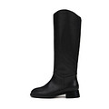 Актуальные высокие сапоги, вдохновленные модной ковбойской эстетикой. Материал верха - черная натуральная кожа. Подкладка и стелька утеплены мягким ворсином. Резиновая подошва отличается прочностью.