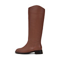 Актуальные высокие сапоги, вдохновленные модной ковбойской эстетикой. Материал верха - натуральная кожа рыжего оттенка. Подкладка и стелька утеплены мягким ворсином. Резиновая подошва отличается прочностью.