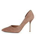 Эффектные бежевые велюровые туфли на тонком каблуке. Подкладка и стелька изготовлены из мягкой натуральной кожи и гарантируют идеальную посадку. Пара отлично впишется в повседневные и праздничные образы.