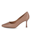 Эффектные бежевые туфли из матовой кожи шевро. Подкладка и стелька, выполненные из нежной кожи шевро, формируют оптимальный воздухообмен. Фигурный каблук высотой 83 мм гарантирует равномерное распределение нагрузки по стопе.