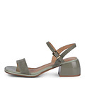 Изящные зеленые босоножки из бархатистого велюра с трендовым квадратным мысом. Тонкие ремешки с подкладкой из натуральной кожи бережно фиксируют пару на ноге. Стелька изготовлена из нежной кожи шевро. Каблук высотой 52 мм формирует оптимальное распределение нагрузки по стопе.  Модель с застежкой на классический замок с пряжкой.