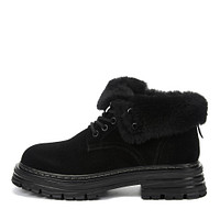 Элегантные бежевые ботинки из спилка с меховой отделкой идеально подходят для холодного сезона. Подкладка и стелька из мягкой обеспечивают комфортную терморегуляцию стоп. Высокая резиновая подошва с выраженными протекторами гарантирует надежное сцепление с любой поверхностью.