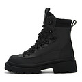 Актуальные черные ботинки в стиле рабочей обуви. Верх выполнен из практичной натуральной кожи с эластичными текстильными вставками в районе голенища. Подкладка и стелька утеплены шерстью. Утолщенная тракторная подошва из резины обеспечивают устойчивость на любой поверхности.