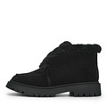 Теплые черные ботинки, декорированные натуральным мехом. Верх выполнен из бархатистого спилка. Шерстяная стелька обеспечивает стопы дополнительным теплом. Широкая резиновая подошва с выраженными протекторами отличается прочностью и хорошим сцеплением с любой поверхностью.