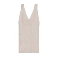 Практичная бежевая майка с трендовой фактурой "лапша". Модель выполнена из мягкого микса с вискозой и нейлоном. Широкие бретели и V-образный вырез акцентируют зону декольте. Майка станет прекрасной основой для многослойных образов.