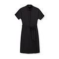 Базовое черное платье приталенного кроя. Отложной воротник, застежка на пуговицы и пояс, акцентирующий талию, добавляют изделию характера. Платье станет отличной основой ваших повседневных и праздничных образов.