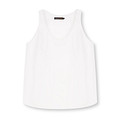 Лаконичная белая блузка без рукавов. Овальный вырез деликатно акцентирует зону декольте. Блузка отлично подойдет в качестве основы многослойных образов с жакетами и кардиганами.