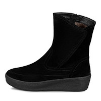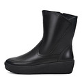 Удобные черные полусапоги из гладкой натуральной кожи. Пара утеплена мягким натуральным мехом. Модель с практичной застежкой на молнию и миндалевидным мысом. За устойчивость на любых покрытиях отвечает прочная подошва из материала ТЭП.