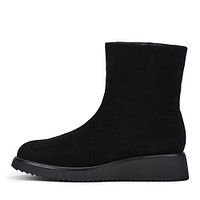Классические черные ботинки с минималистичным дизайном. Верх выполнен из влагонепроницаемым покрытием. Подкладка и стелька утеплены мягким ворсином, что обеспечивает комфорт и тепло в прохладную погоду. Утолщенная подошва из резины с выраженными протекторами отличается прочностью и хорошим сцеплением с любой поверхностью.