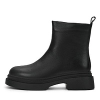 Минималистичные молочные ботинки на холодный сезон. Верх выполнен из гладкой натуральной кожи. Подкладка и стелька из мягкой шерсти поддерживают оптимальный микроклимат внутри пары. Утолщенная резиновая подошва отличается прочностью и хорошим сцеплением с поверхностью.