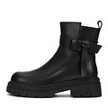 Графичные черные ботинки с декоративной пряжкой в байкерском стиле. Верх выполнен из гладкой натуральной кожи. Подкладка и стелька из шерсти обеспечивают комфортную терморегуляцию на улице и в помещении. Высокая подошва из ТЭП с выраженными протекторами отличается легкостью, морозоустойчивостью и хорошим сцеплением с любой поверхностью.