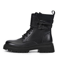 Трендовые коричневые ботинки, вдохновленные байкерской эстетикой. Верх выполнен из гладкой натуральной кожи. Пара утеплена мягким ворсином. Прочная резиновая подошва с протектором гарантирует надежное сцепление с любой поверхностью. Модель фиксируется шнуровкой и удобно застегивается на молнию.