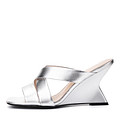 Женские сабо из натуральной кожи с квадратным носом и ремешками на устойчивой танкетке. Модель без задника с открытым носом, кожаная подкладка и стелька, резиновая подошва с антискользящими свойствами. Подходят для работы, отдыха, праздников, пляжа и дома. Цвет — серебристый. Комфортная посадка на широкую и среднюю ногу.