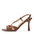 Кожаные женские босоножки с открытым носом и пяткой, квадратным мысом и ремешком. Элегантная модель на устойчивом каблуке, подходит для работы, прогулок, вечеринок, праздников и повседневных образов. Цвет — коричневый. Мягкая кожа, анатомичная стелька, резиновая подошва, стильная фурнитура.