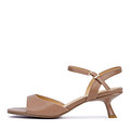 Женские босоножки из натуральной кожи с открытой пяткой, круглым носом и ремешком вокруг щиколотки. Элегантная модель на тонком каблуке, подходит для офиса, торжеств, прогулок и повседневной носки. Цвет — бежевый. Мягкая кожаная подкладка, анатомичная стелька, противоскользящая подошва.