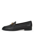 Лаконичные чёрные лоферы на тонкой подошве из резины. Материал верха - нежная кожа шевро. Женские лоферы с отделкой из текстиля и стелькой из шевро украсили перемычкой с пряжкой-трензелем.