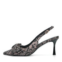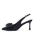 Туфли женские текстильные с острым носом в стиле лодочки слингбэки, на среднем каблуке. Идеальны для работы, танцев, праздников и офисной работы. Черные туфли с бантом, выполненные из мягкого текстиля, подходят для повседневной носки и легко сочетаются с разной одеждой. Подошва из ТПУ с противоскользящими свойствами.
