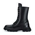 Эффектные черные полусапоги с высокой шнуровкой. Верх выполнен из прочной натуральной кожи. Меховые подкладка и стелька обеспечивают надежную теплоизоляцию пары. Утолщенная рифленая подошва из материала ТЭП с выраженными протекторами отличается легкостью, морозоустойчивостью и хорошим сцеплением с поверхностью. Модель с удобной застежкой на молнию.